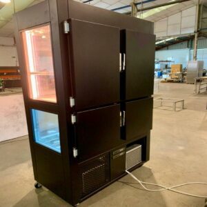 Opcionalmente incluyen iluminación LED, estantes de presentación y control automático de humedad, lo que garantiza presentación estética sin comprometer la conservación.
