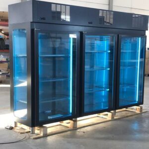 Disponemos de armarios frigoríficos y congeladores industriales con puertas ciegas o de cristal, ideales para almacenamiento de grandes volúmenes en cocinas, salas de preparación o cámaras auxiliares.