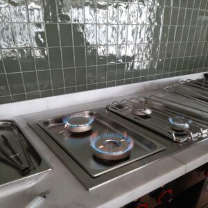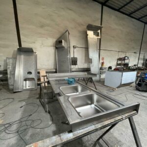 El mobiliario está diseñado para integrarse fácilmente con otras piezas de cocina: líneas frías, neutras o calientes. Todo el equipamiento mantiene una altura de trabajo estándar y distribución cómoda, favoreciendo el flujo operativo.