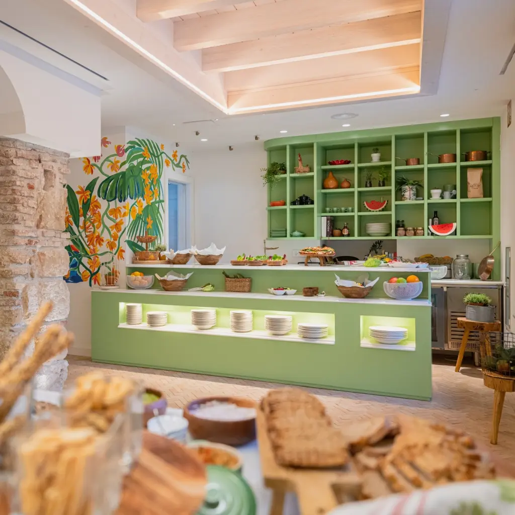 Deguste su café matutino y bollos recién horneados en La Bodega, beba champán bajo las estrellas en nuestro Sky Bar, disfrute de un verdadero festín en la espectacular cocina abierta de La Fonda Restaurante… o simplemente saboree la exquisita gastronomía desde la comodidad de su habitación.