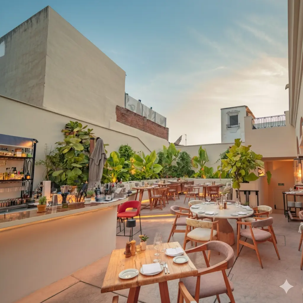 Disfrute de la belleza de la ciudad al atardecer desde la tranquilidad de nuestro Sky Bar. Sumérjase en la vibrante energía de nuestro restaurante de alta cocina, La Fonda, o saboree deliciosas tapas y platos caseros en La Bodega, justo enfrente del hotel, cruzando la plaza. Tres ambientes únicos, todos para disfrutar de una experiencia gastronómica excepcional.